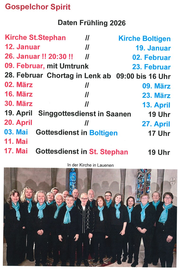 Fahrgelegenheiten werden angeboten. Bitte wenden Sie sich dazu an die verantwortliche Person. Die Daten werden jeweils im Kirchenblatt veröffentlicht.